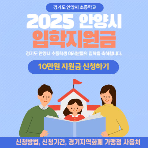 [2025년 안양시 초등학교 입학지원금] 10만원 신청방법 및 사용처 확인하기